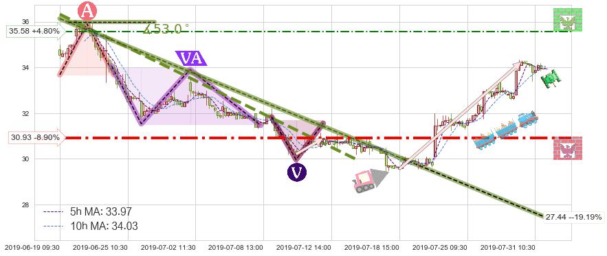♘ 阻力价格位35.58,可信任强度53.36%,距离最后交易2019-07-31 15:00形成的收盘价格33.95相差 +4.80%