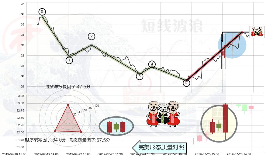 ➢ 🕰 价格走势在2019-07-25 14:00:00至2019-07-26 09:30:00期间形成两红夹一黑,残存影响值:5.13