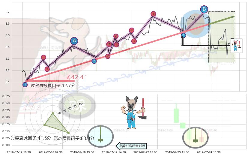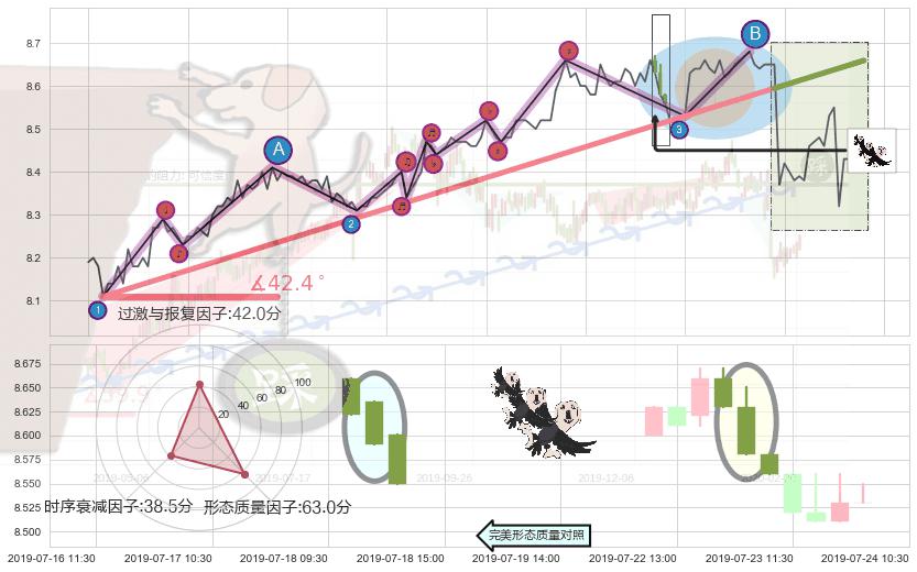 ➢ 🕰 价格走势在2019-07-24 00:00:00至2019-07-25 00:00:00期间形成顶部尽头线(下山虎),残存影响值:-4.44