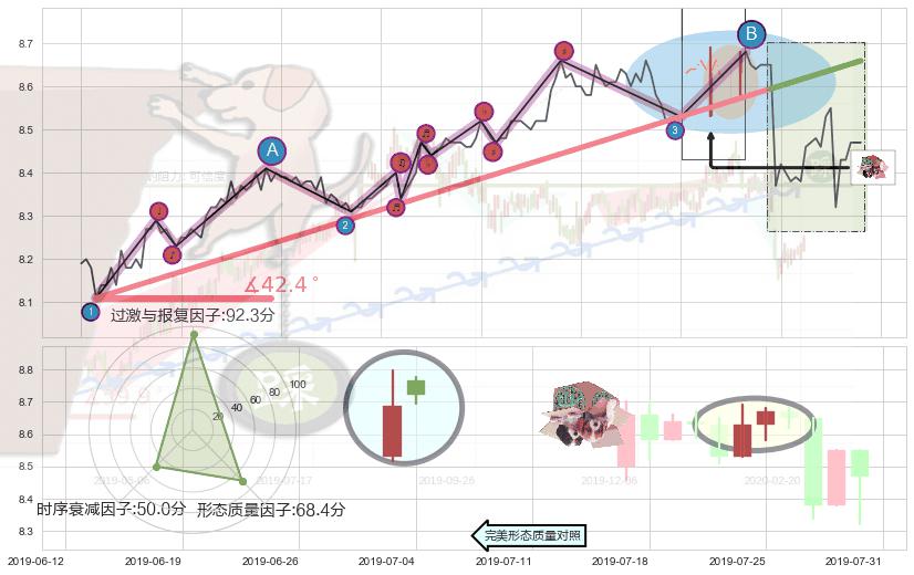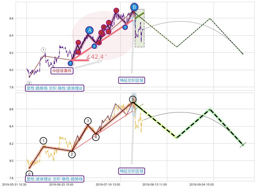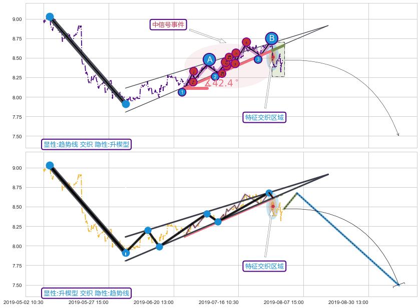 ➢ 2019-06-25 11:30-2019-07-26 15:00上升趋势存在反转[风险],其原上升趋势的支撑位(8.66)已破位[强阻力信号],原上升趋势角度: 42.4˚