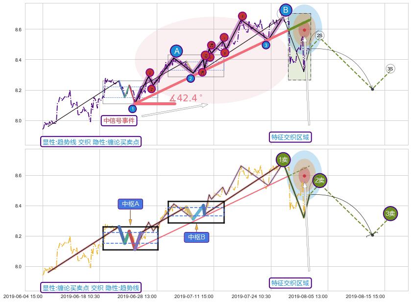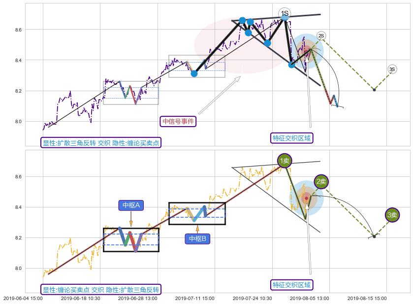 ➣ 缠论买卖点:猜想2卖持续蓄力下跌至3卖 → 下跌 → 风险信号 → 小趋势跟踪