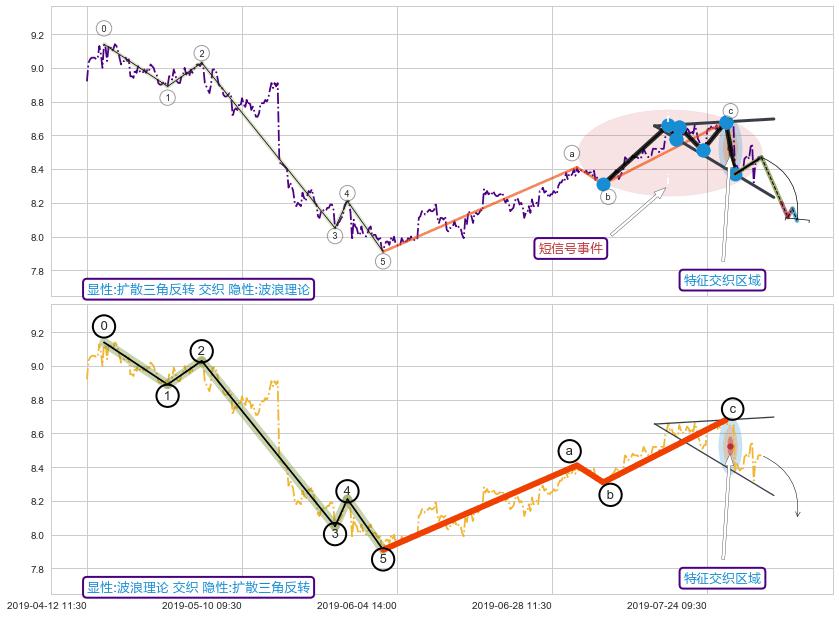 ➢ 趋势线属【短级别信号事件】波浪理论属【长级别信号事件】长短周期组合信号事件, 短长事件长度比33.83%