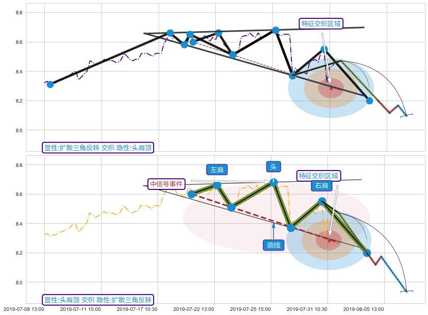 ➢ 【未确认突破,预测即将形成突破】头肩顶起点:07-18:14, 预测突破点:08-02:13,形态共66交易小时