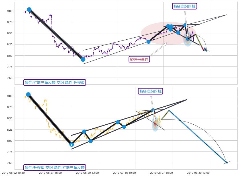 ➣ 扩散三角反转:猜想临近关键支撑位突破点 → 临近拐点下跌 → 风险信号 → 大趋势均值回复