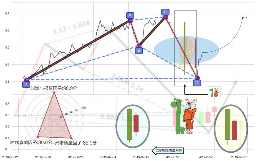 ➣ 已完成【鲨鱼】形态起点X: 07-08:15, 终点D: 07-31:09, 共98交易小时