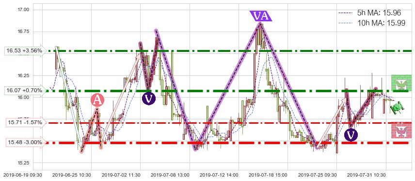 ♘ 阻力价格位16.53,可信任强度74.61%,距离最后交易2019-07-31 15:00形成的收盘价格15.96相差 +3.56%