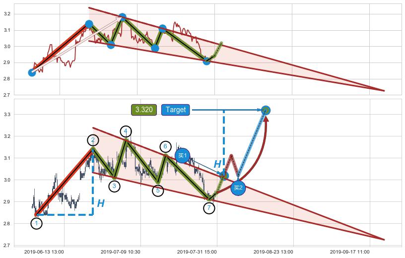 ➣ 最小中继整理跌幅→𝐇: 1.0000 (𝐇旗杆的长度:旗杆起点→顶点)