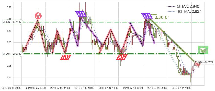 ♘ 阻力价格位3.001,可信任强度83.92%,距离最后交易2019-07-31 15:00形成的收盘价格2.940相差 +2.07%