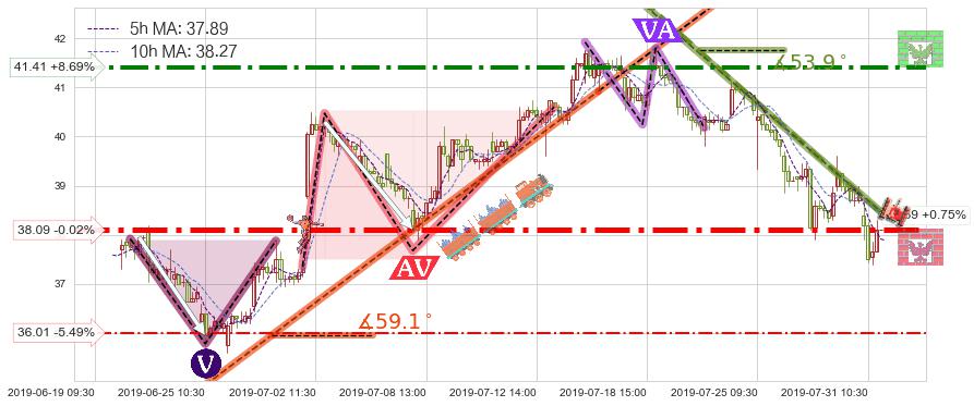 ➣ 预测:2019-08-02 13:00,【试探阻力】稳定目前下跌趋势的前提下,预测价格:37.60