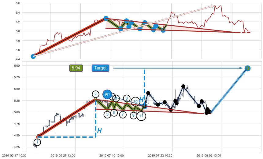 ➣ AI预测: 假定反转启动后, 第❶目标位置(08-15:12, 5.04)