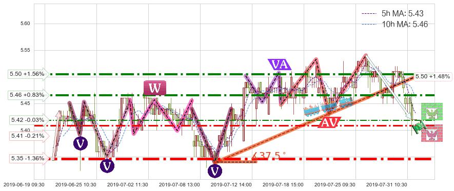 ♘ 阻力价格位5.46,可信任强度82.40%,距离最后交易2019-07-31 15:00形成的收盘价格5.42相差 +0.83%
