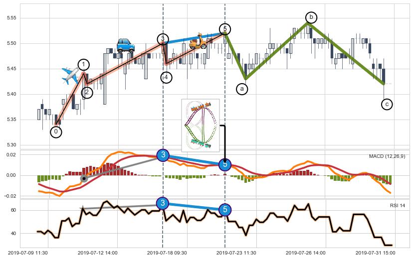 ➣ 第一, 三, 五浪上涨动能逐渐【衰弱变小】,趋势呈现不稳迹象