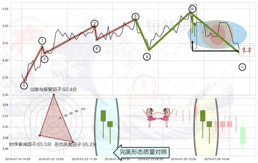 ➢ 🕰 价格走势在2019-07-26 09:30:00至2019-07-26 10:30:00期间形成双针探底,残存影响值:7.33