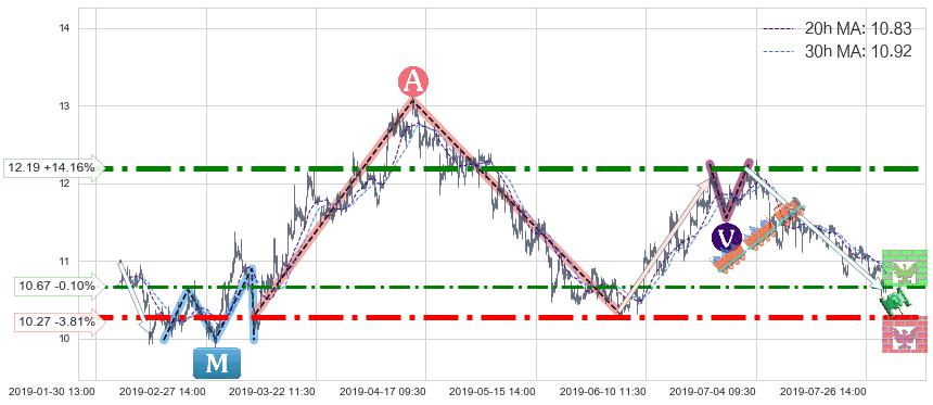 ♘ 支撑价格位10.27,可信任强度94.49%,距离最后交易2019-07-31 15:00形成的收盘价格10.68相差 -3.81%
