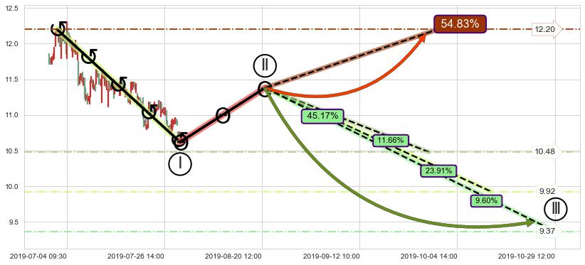 ♘ 阻力价格位12.19,可信任强度93.98%,距离最后交易2019-07-31 15:00形成的收盘价格10.68相差 +14.16%