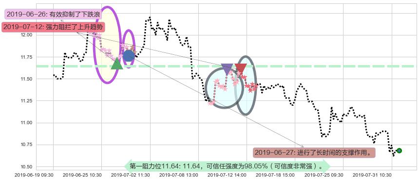 2019-06-26: 第一阻力位11.64有效抑制了下跌浪,成功阻止了价格的继续下跌。
