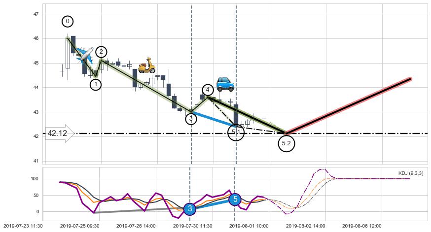 ➣ 5.1: 预测当前第5浪位置(07-31:09, 42.40),仍然有下跌空间