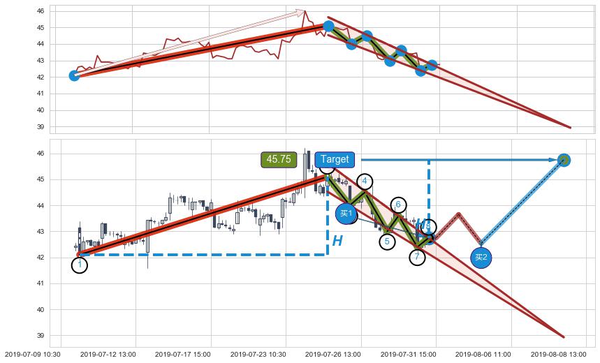 🦴 长线均值回复组合短线趋势跟踪[强阻力信号]2019-07-24 09:30-2019-07-31 14:00下跌趋势依然成立(下跌趋势跟踪依然存在),短线价格略微上行反弹(均值回复猜想),即将接近下跌趋势提供的未破位阻力价格:42.92。