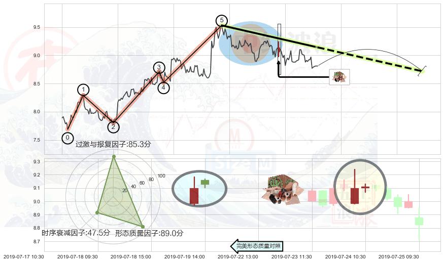 ➢ 🕰 价格走势在2019-07-24 09:30:00至2019-07-24 10:30:00期间形成顶部尽头线(下山虎),残存影响值:-4.74