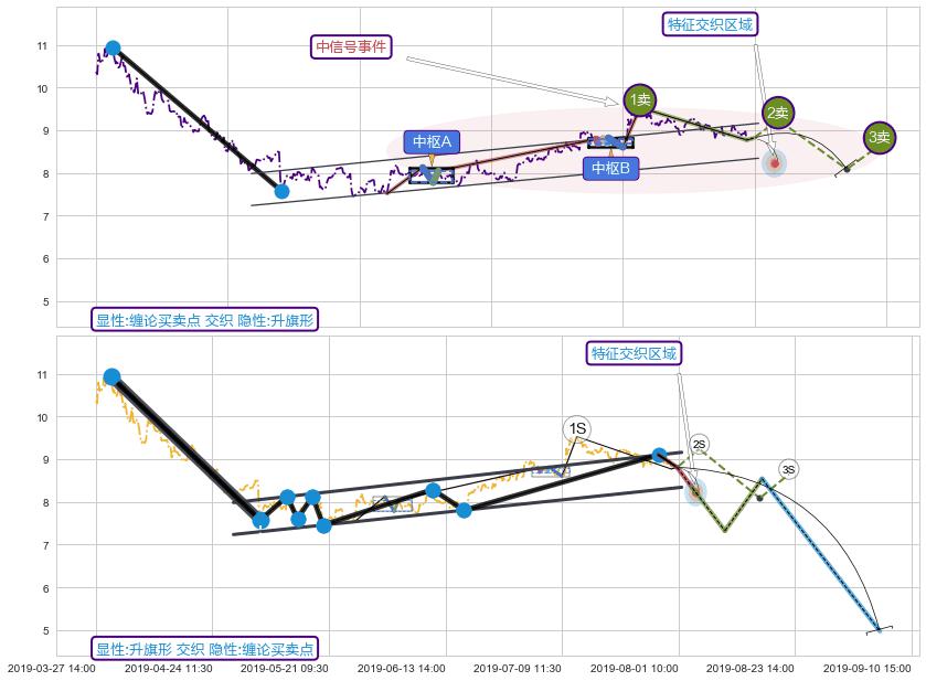➣ 缠论买卖点:猜想2卖持续蓄力下跌至3卖 → 下跌 → 风险信号 → 小趋势跟踪