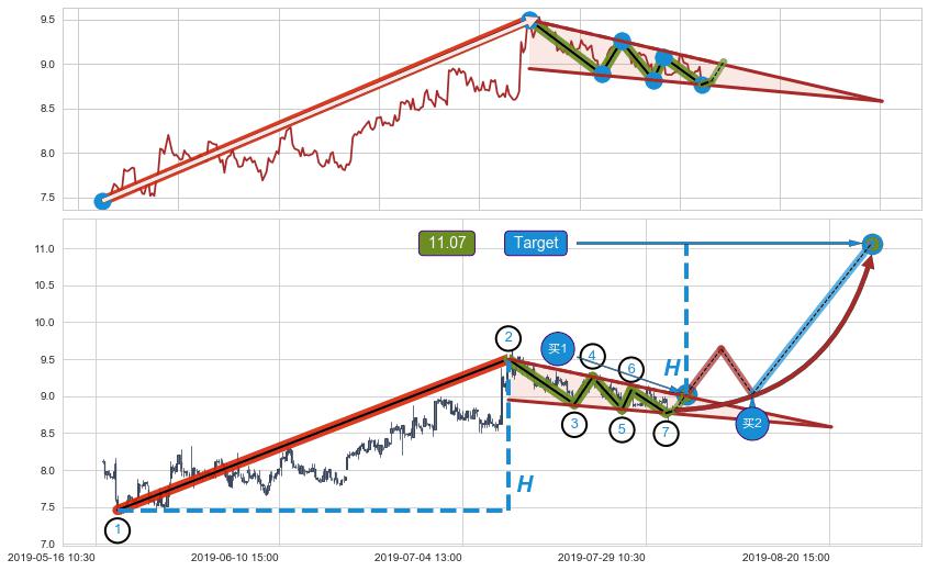 ➢ 最小中继整理涨幅→𝐇: 2.043 (𝐇楔型旗杆的长度:楔型起点→顶点)