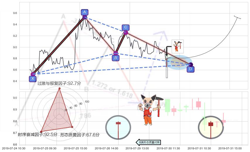 ➢ 🕰 价格走势在2019-07-31 10:30:00至2019-07-31 10:30:00期间形成锤头线(锤子线),残存影响值:7.88