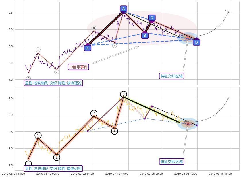 从2019-05-31 09:30至2019-06-11 15:00,共包含42个小时,阶段股价上涨2.16%,阶段股价变动位移路程比: 1 : 12
