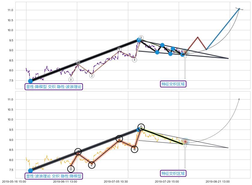 ➢ 降楔型与波浪理论信号事件周期长度级别相同,同周期信号事件