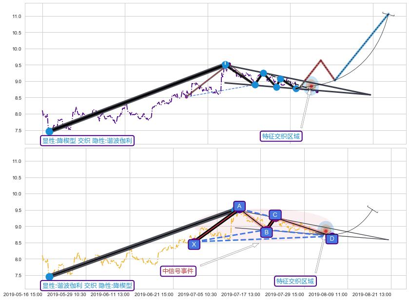 ➢ 谐波伽利:c下跌临近d:猜想拉升 → 上涨 →【拐点】强支撑临近 → 大趋势均值回复