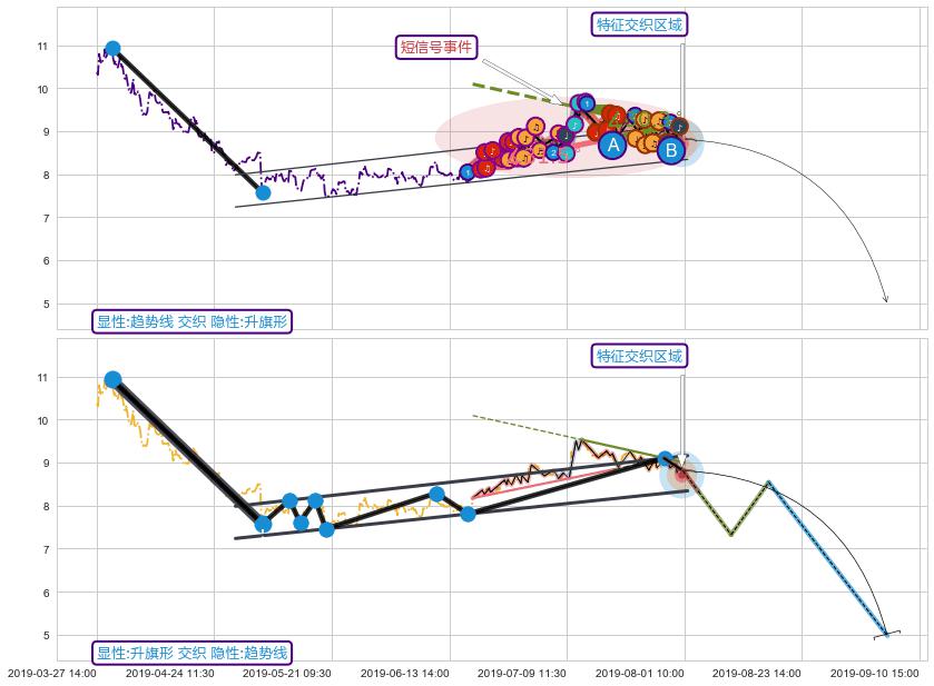 ➢ 趋势线属【短级别信号事件】升旗形属【长级别信号事件】长短周期组合信号事件, 短长事件长度比33.88%