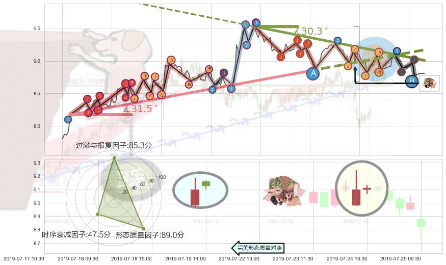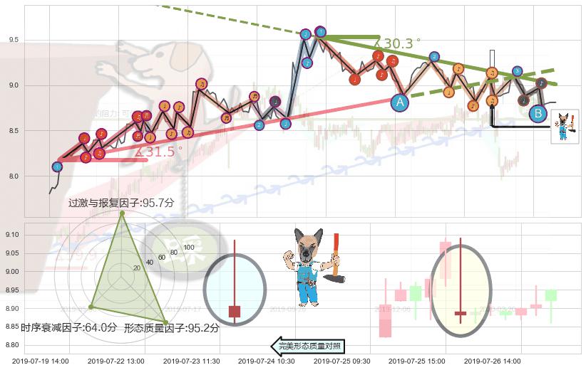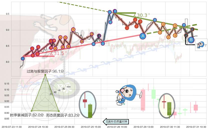 ➣ 2019-06-19 09:30-2019-07-18 09:30上升趋势存在反转[风险],其原上升趋势的支撑位(9.17)已破位[强阻力信号],原上升趋势角度: 31.5˚
