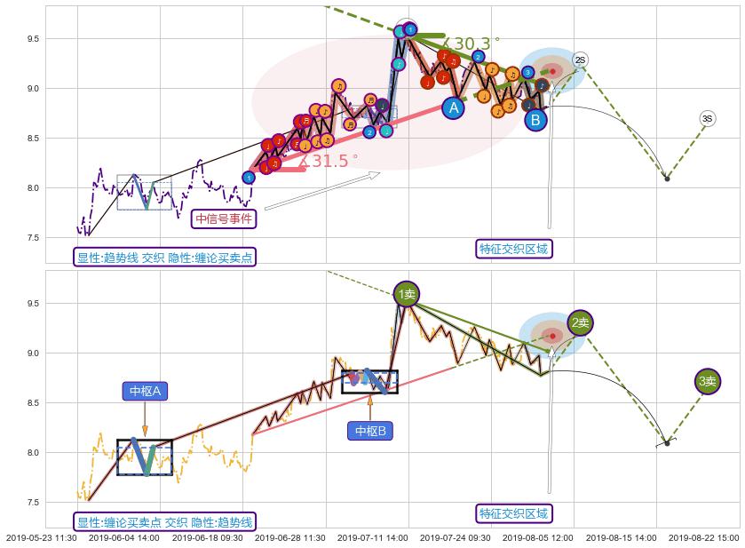 ➣ 缠论买卖点:猜想2卖持续蓄力下跌至3卖 → 下跌 → 风险信号 → 小趋势跟踪