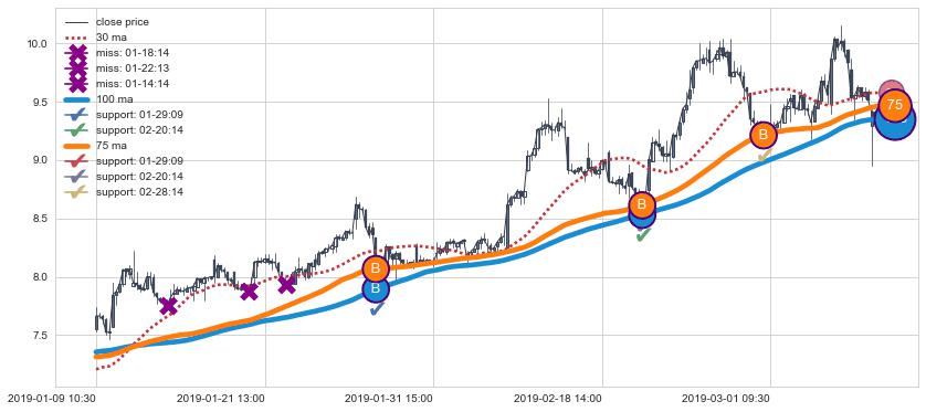 ➢ 最优均线组合共正确确认支撑阻力信号8处,正确确认率 42.11%