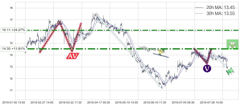 ♘ 阻力价格位16.11,可信任强度58.41%,距离最后交易2019-07-31 15:00形成的收盘价格12.96相差 +24.27%