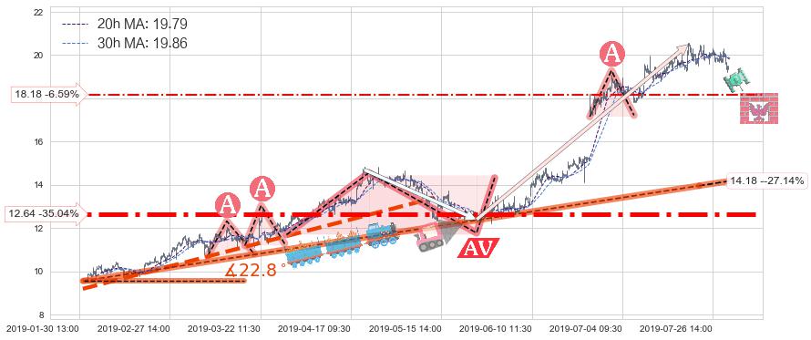 ♞ 20小时均线:19.79,30小时均线:19.86→ 快线<慢线