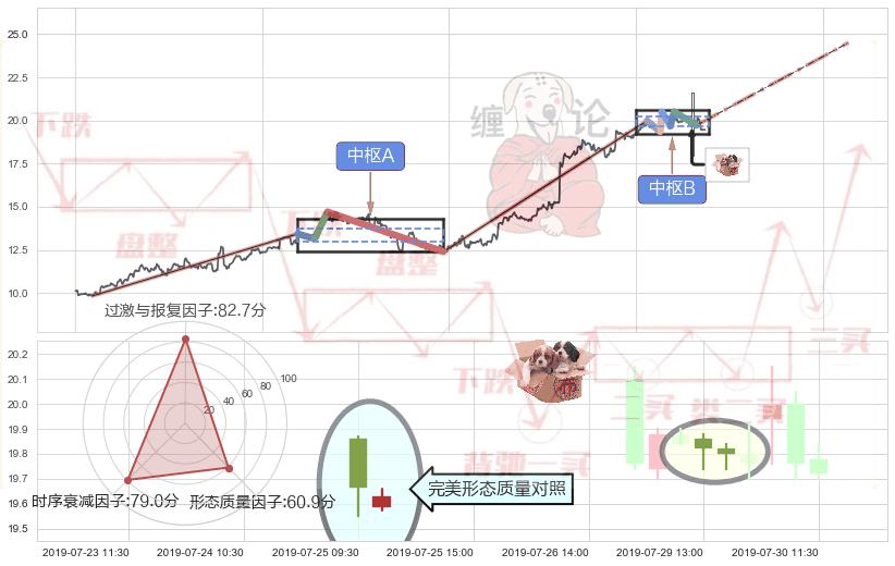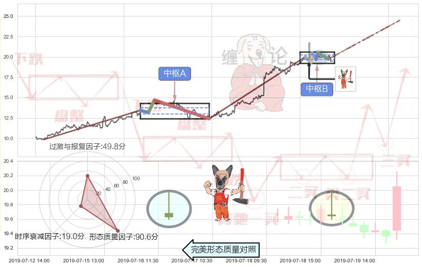 ➣ 【中枢B】:07-17:13-07-30:11,中枢由6笔构成,共54交易小时, ZG=19.98, ZD=19.72
