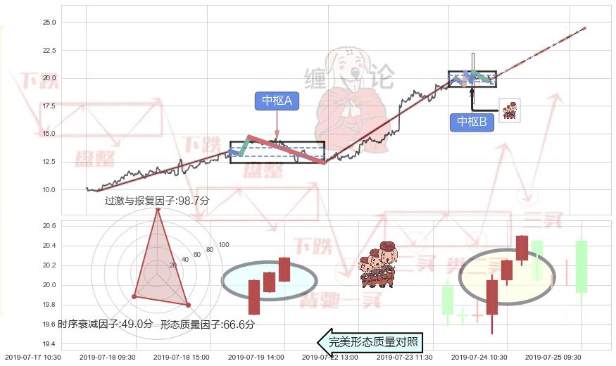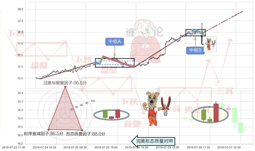 从2019-06-25 09:30至2019-07-08 10:30,共包含50个小时,阶段股价上涨1.90%,阶段股价变动位移路程比: 1 : 16
