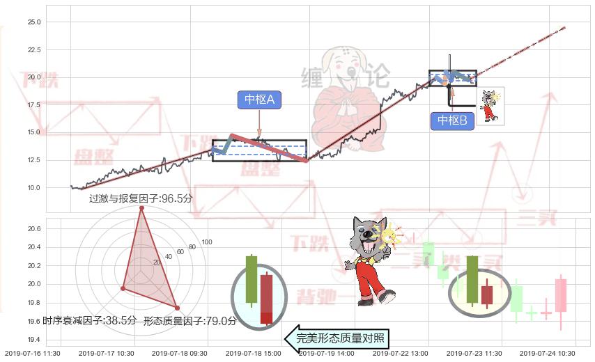 ➢ 看涨(低位)倒锤头线 + 缠论中枢点突破中枢B阻力拉升信号叠加后【反向回撤率】低,【看多】信号叠加【存续影响大】