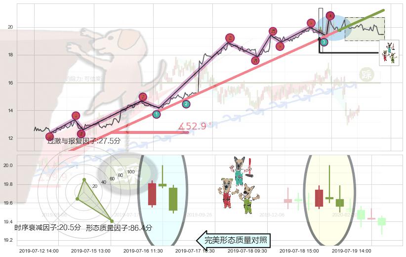 ➢ 🕰 价格走势在2019-07-23 09:30:00至2019-07-23 10:30:00期间形成曙光初现形态,残存影响值:6.00