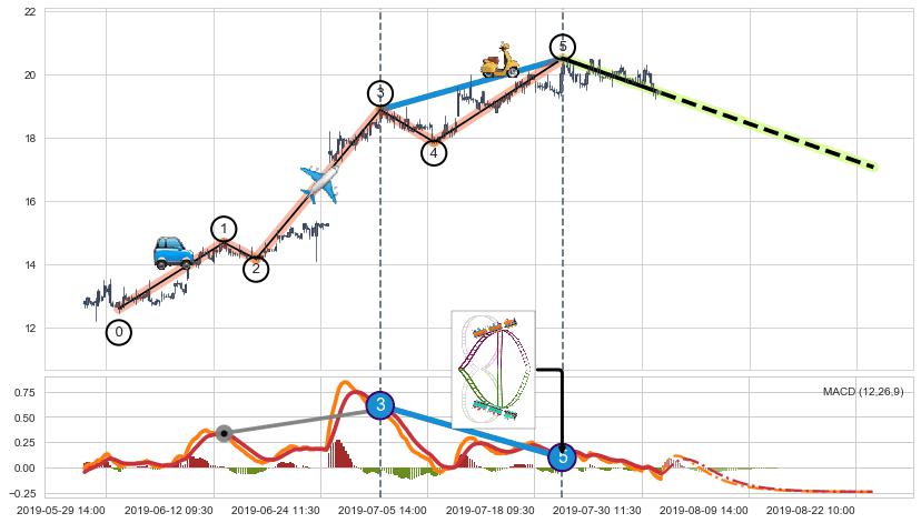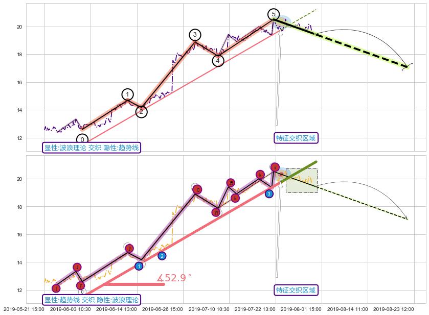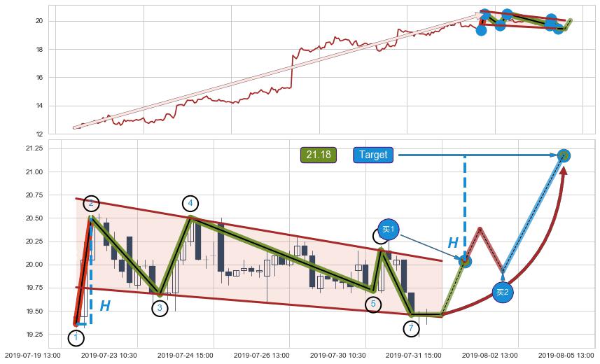 ➢ 最后的上涨趋势2019-05-23 09:30至2019-07-23 13:00:存在破位迹象,后续小调整或者反转下跌