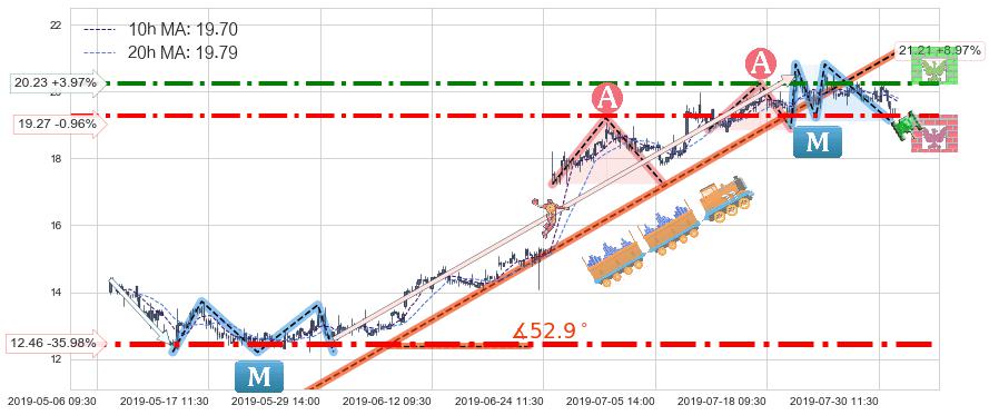 ♘ 阻力价格位20.23,可信任强度75.90%,距离最后交易2019-07-31 15:00形成的收盘价格19.46相差 +3.97%