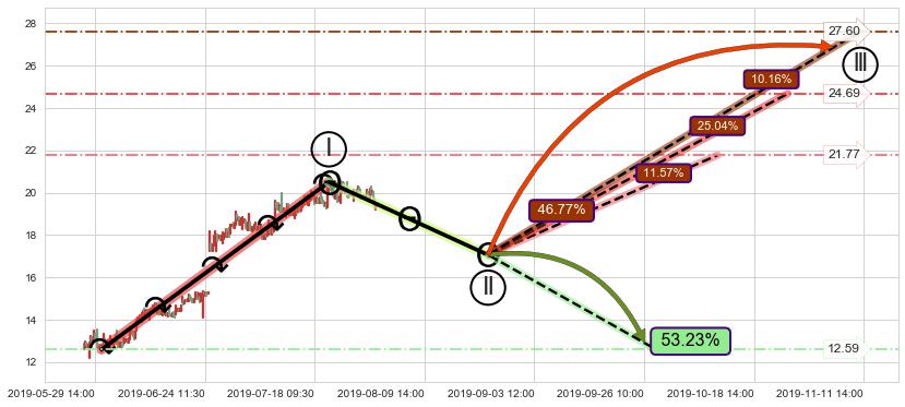 ➢ 循环浪继续向上【最高】位置(11-11:14, 27.60),匹配聚类样本比例21.73%, 可能性概率10.16%