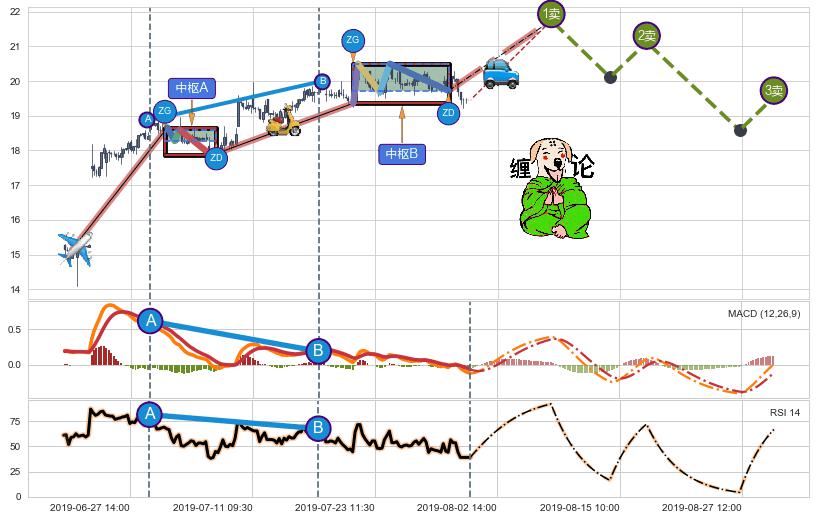➣ 【未完成】缠论 起点:06-21:14, 完成第1中枢A,完成第2中枢B,到达07-31:15