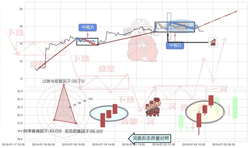 从2019-07-19 15:00至2019-07-31 15:00,共包含49个小时,阶段股价上涨0.78%,阶段股价变动位移路程比: 1 : 43