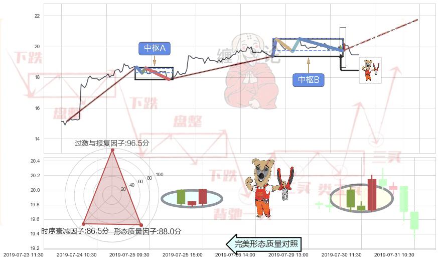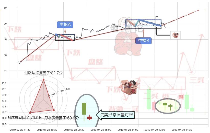 ➣ 【中枢B】:07-19:15-07-30:11,中枢由5笔构成,共40交易小时, ZG=20.50, ZD=19.72