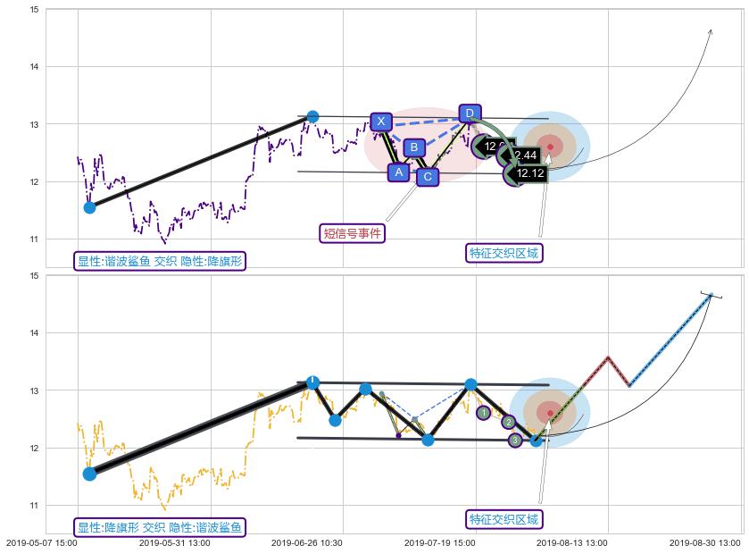 ➢ 谐波鲨鱼属【短级别信号事件】降旗形属【长级别信号事件】长短周期组合信号事件, 短长事件长度比20.00%