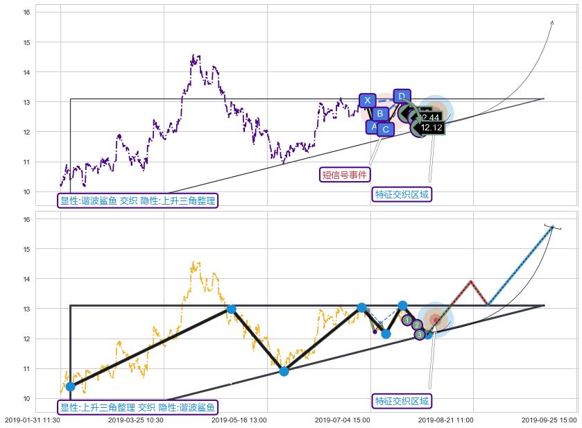 ➢ 谐波鲨鱼属【短级别信号事件】上升三角整理属【长级别信号事件】长短周期组合信号事件, 短长事件长度比9.77%