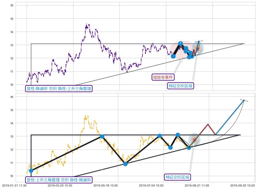 ➢ 降旗形属【短级别信号事件】上升三角整理属【长级别信号事件】长短周期组合信号事件, 短长事件长度比12.21%