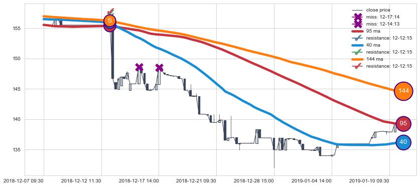📝 多条均线形成死叉后走势最低价格达到: 162.10