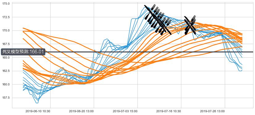 ➣ 70小时均线于(07-11 10:30: 170.49)形成【死叉】基于【死叉历史模型】预测死叉后最低波谷价格: 165.03, 死叉后最低价格162.10,已经下跌超出预测最低波谷价格, 预期反弹